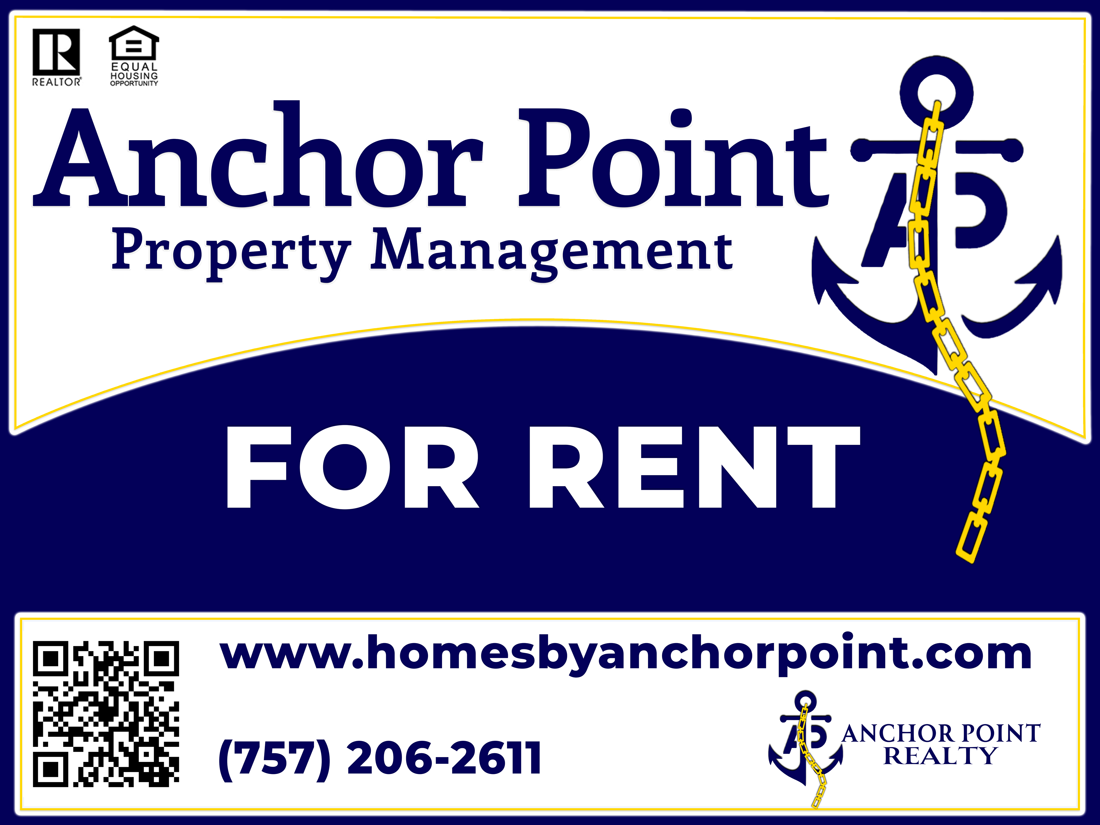 This project focused on developing a clean, professional brand identity for Anchor Point Property Management / Realty. The goal was to create a logo system and signage that communicated trust, stability, and clarity while remaining versatile across physical and digital applications